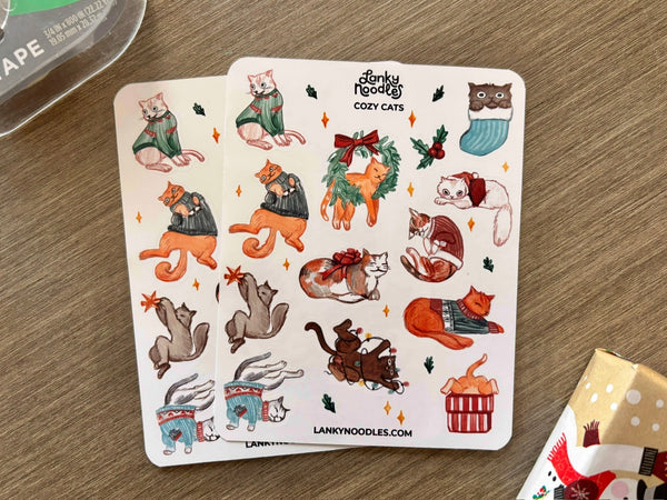 These Cozy Cat Stickers are purrrfect for bullet journals, planners, scrapbooks, phone cases and more! Featuring cats in cozy winter sweaters and mischievous positions, these stickers make the perfect gift for cat lovers or a sweet treat for yourself.
