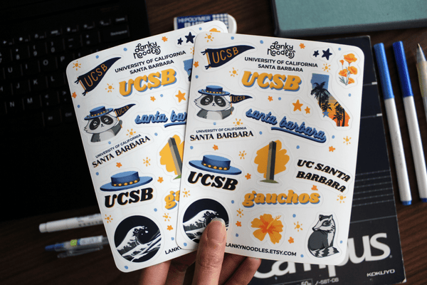 These UC Santa Barbara Stickers include all of your favorite UCSB traditions and symbols! Perfect for bullet journals, planners, scrapbooks, phone cases and more. Sticker bundles are great for student org events, finals care packages, and gifts!