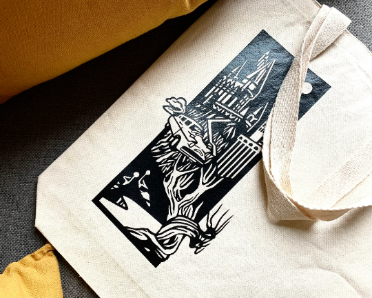 Specifications: -12oz Heavy Canvas Reinforced at stress points for extra durability Includes a bottom gusset for extra room and reinforced strength (perfect for books!)